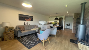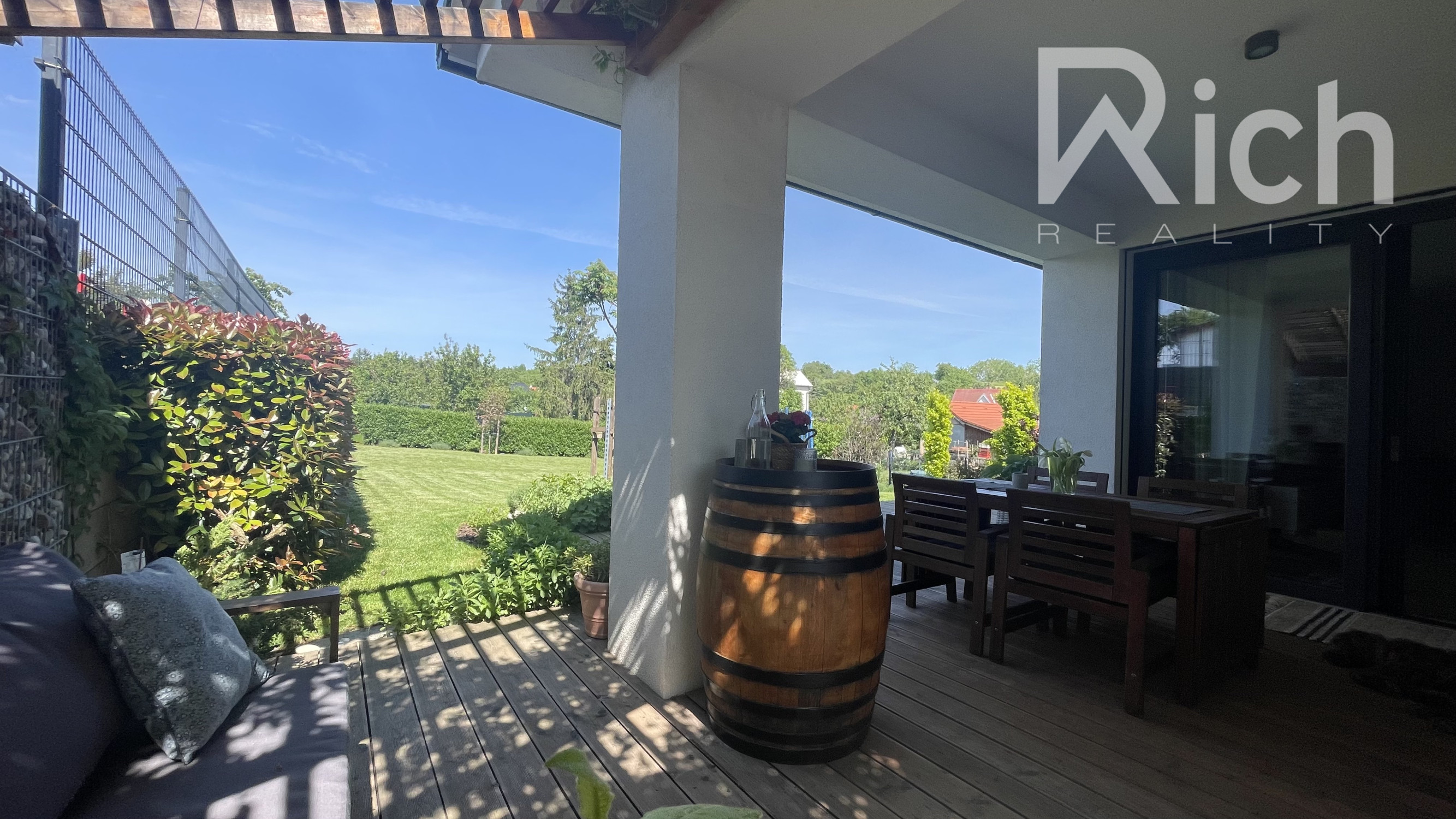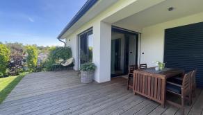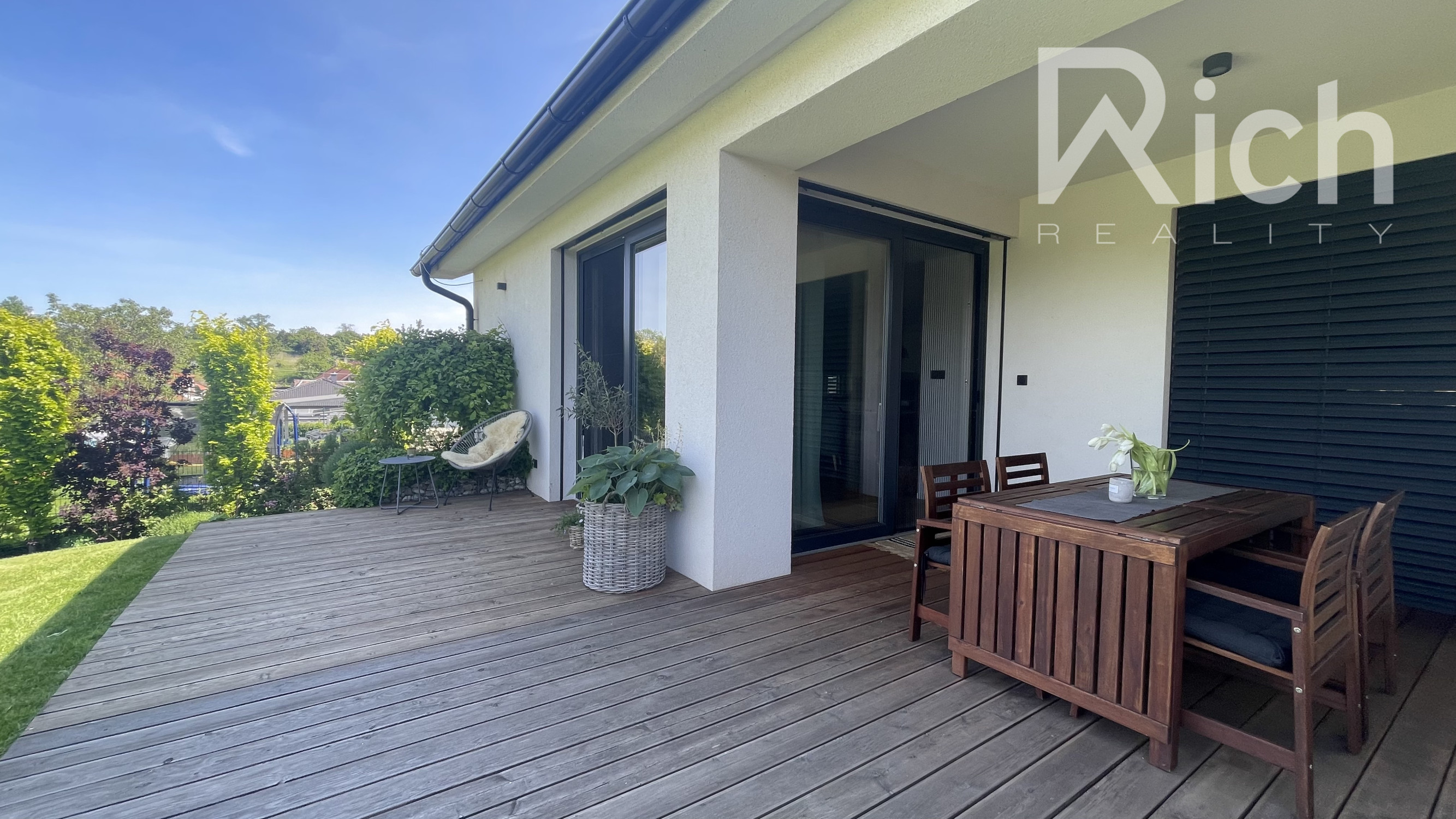 Rich REALITY EXKLUZÍVNE ponúka na predaj len päť ročný 4 izb. rodinný dom, ktorý je vkusne a moderne zariadený. Nachádza sa v tichej lokalite Suchej nad Parnou ( Vlčia dolina ) a pritom len 6 km od Trnavy. Obyvacia izba je priamo prepojená s priestrannou zastrešenou terasou z ktorej je pekný výhľad na okrasnú záhradu a okolité vinohrady. Ak hľadáte dokonalý relax po práci a bezpečnú záhradu pre deti tak tu to určite nájdete. Dom má 3 spáľne, kúpeľňu s vaňou, sprchovým kútom a WC, samostatné WC, obyvaciu izbu s krbom a modernou dizajnovou kuchyňou. Rodinný dom je kúpou voľný a v prípade záujmu je k dispozícii aj nábytok.